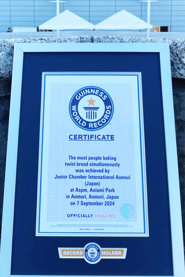 2024年9月7日(土)青森市において同時に棒巻きパンを焼いた最多人数」という項目でギネス世界記録に挑戦。294名という記録で認定されました。青森市内の小中高生を中心に多くの参加者が集まり一斉に棒パン焼きに挑戦し、見事世界記録を達成しました。