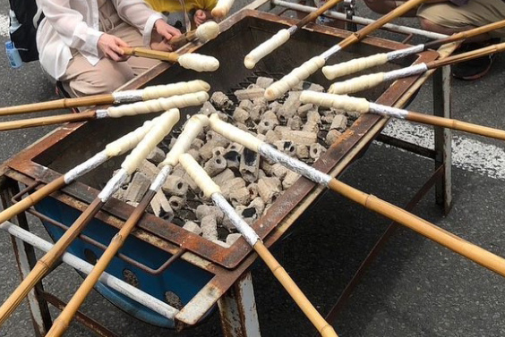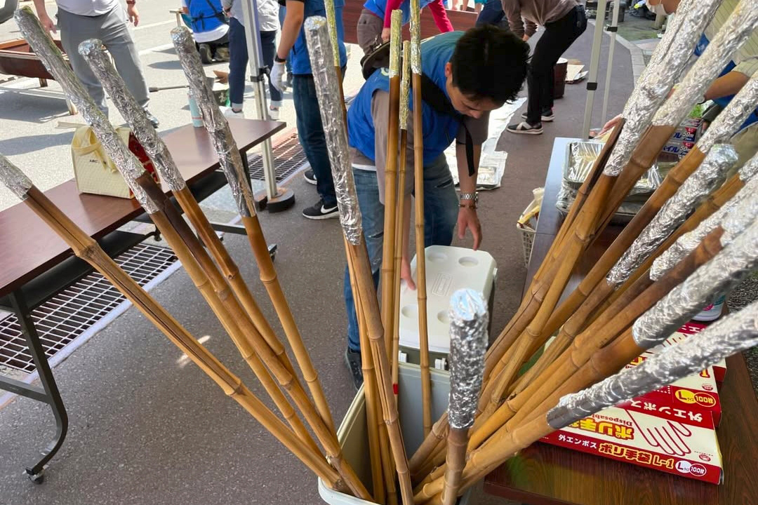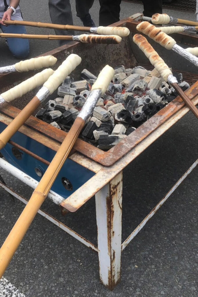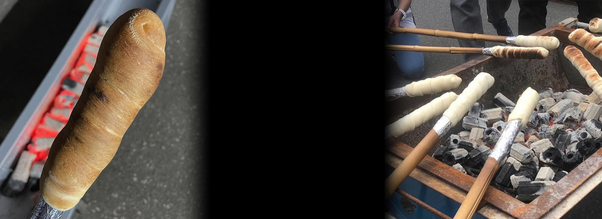 棒パンとは、棒状のパン生地を棒の先に巻きつけ、焚き火や BBQ コンロで焼き上げる青森市ならではのローカルフード。青森市の出店イベントでは定番となっている棒パン。自分で焼き上げるひと手間が子供から大人まで楽しめる人気の理由となっている。