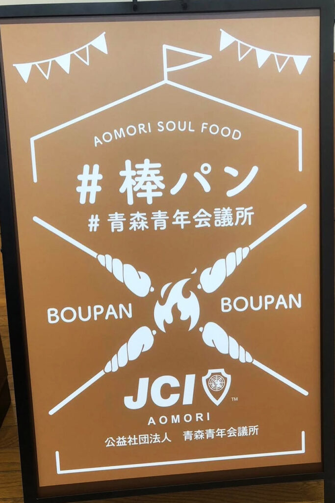 青森青年会議によって「子どもたちに楽しんでもらえるのでは」と考案された棒パン。1982 年子どもたちのためのスポーツ・文化イベント「わんぱく広場」で初めて棒パンが振る舞われた。今日まで地元のパン屋「赤田パン」に協力いただき、特別に棒パン用の生地を使用し、共に青森棒パンを作り上げている。